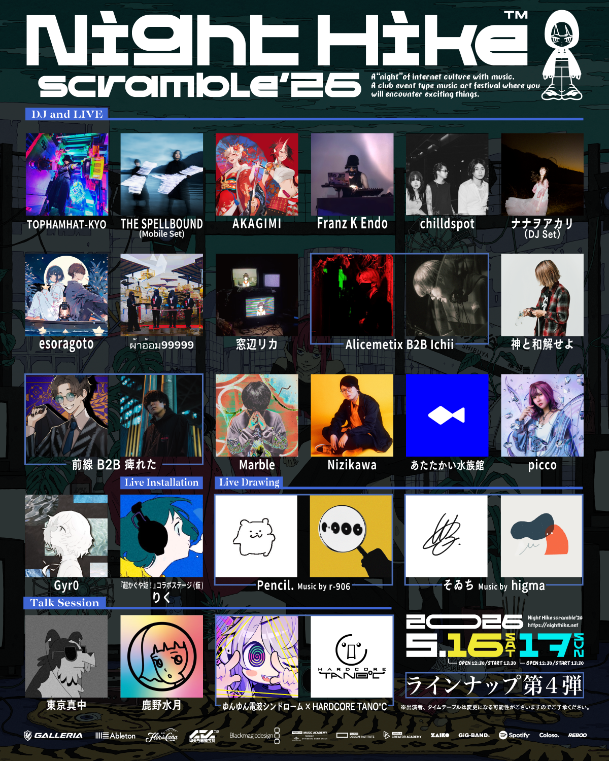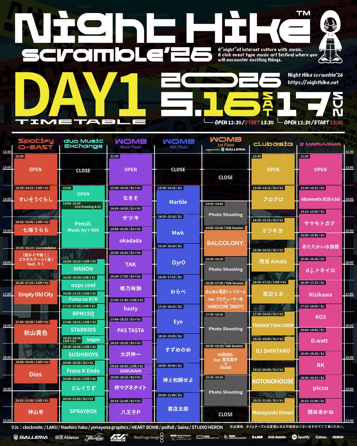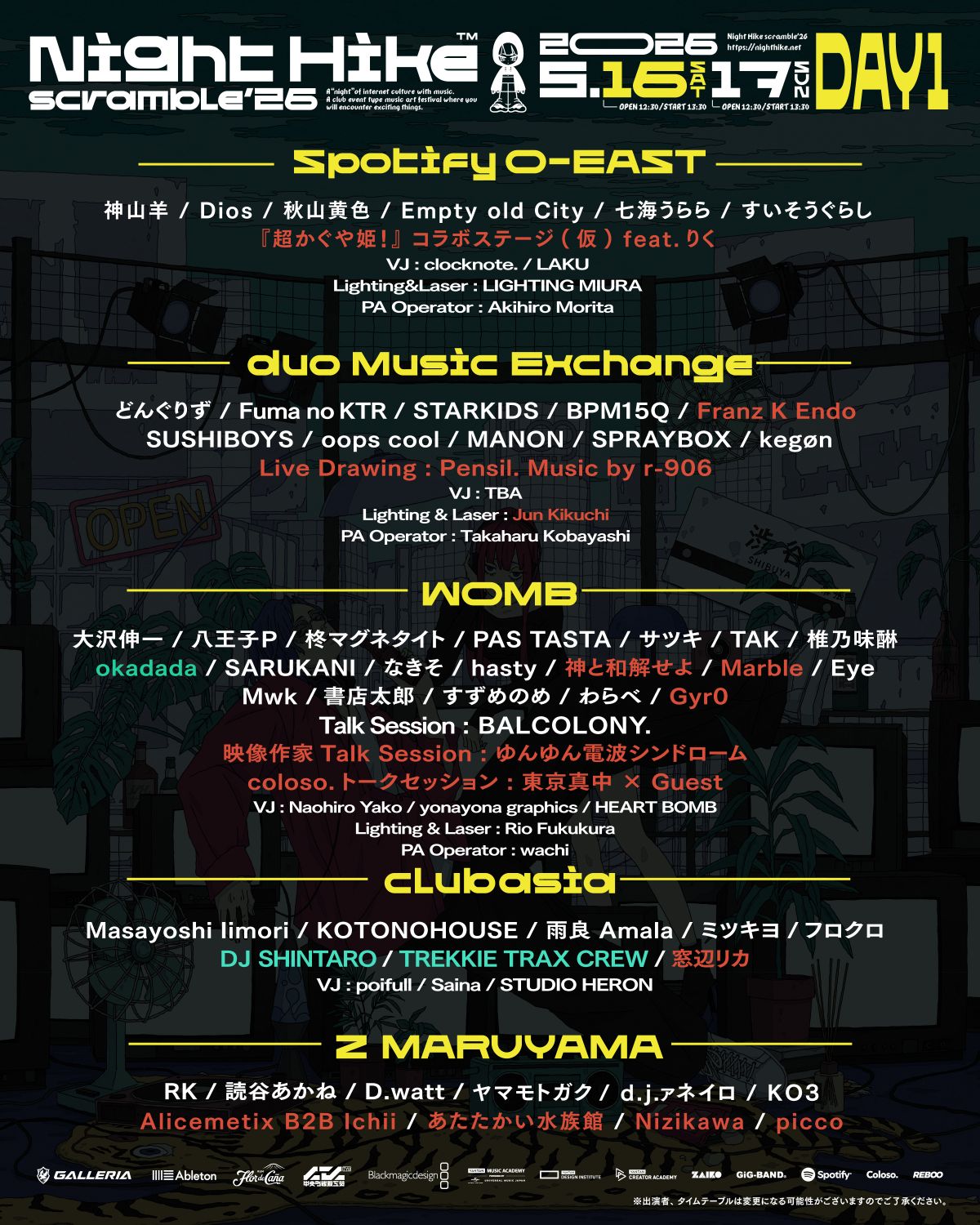 鬱P / DJ WILDPARTY / ナナヲアカリ(DJ SET) / AKAGIMI / 平田義久 / なみぐる / higma / Nor / D-YAMA